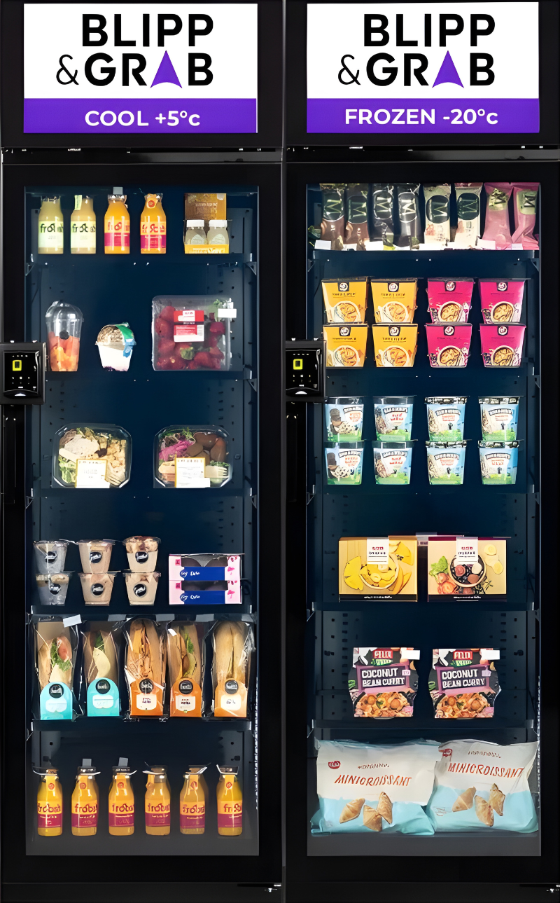 Vi installerar en smart kyl eller frys på er arbetsplats. Medarbetarna handlar genom att blippa sitt kort eller mobil, och systemet registrerar automatiskt köpet. Ingen personal behövs.